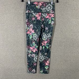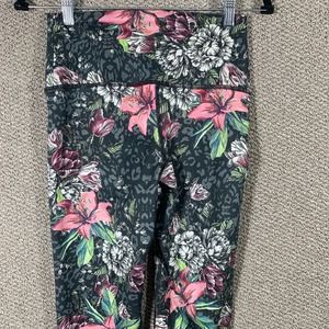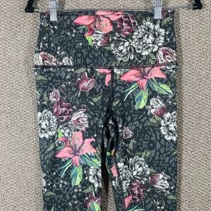 Evolution And Creation Leggings Womens Size Medium Gray Floral High Rise Stretch Athleisure Gym Running