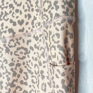 Size Medium. Light pink leggings with gray leopard spots. In excellent condition. Perfect for workout wear or everyday casual wear. SUPER soft and stretchy. Cropped leggings style.