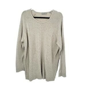 Evolution By Cyrus 2x Sweater Womens Plus Round Neck Textured Rayon Blend Beige