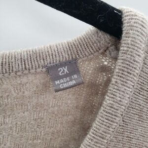 Evolution By Cyrus 2x Sweater Womens Plus Round Neck Textured Rayon Blend beige brown
