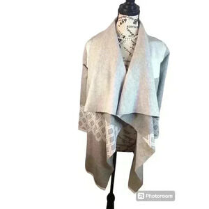 Evolution By Cyrus Small Beige And Taupe Open Front Draped Jacket Viscose Blend