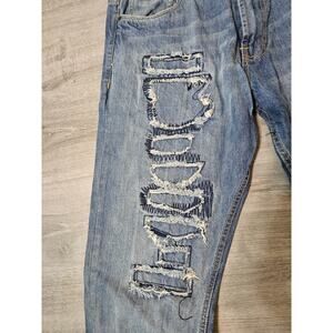 Evolution Design Mens Distressed Destroyed Patched Jeans 38 x32