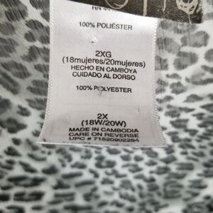 Evolution Embellished V Neck Sheer Animal Print Blouse Top Size 2X Black Gray