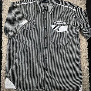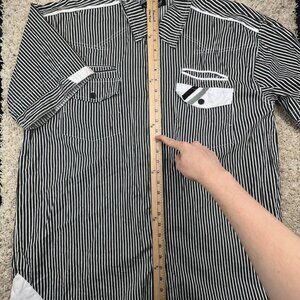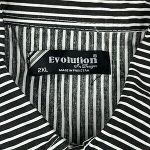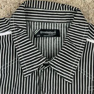 Evolution In Design Button Up Shirt Men 2XL Gray White Striped Short Sleeve