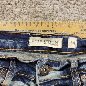 Evolution In Design Jeans Mens 34x32 Measures 34x34 Stacked Distressed. In good condition