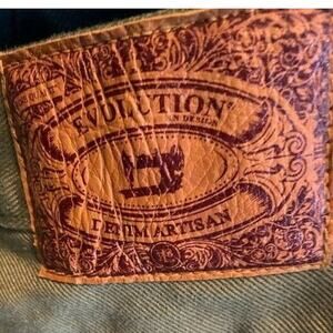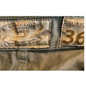 Evolution Mens Classic Straight Jeans Khaki Green 5 Pocket Medium Wash Denim 36x32