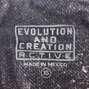Evolution and Creation Capris Leggings. Skull graphic front and back. Yoga. Thick and stretchy. Form hugging. Charcoal Gray White. Made in Mexico. Marked size XS.