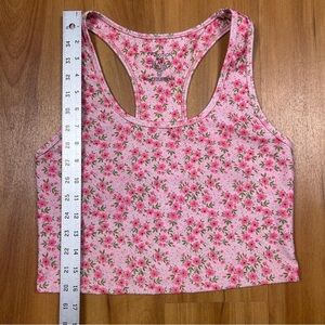 This stylish tank top features a vibrant pink hue and a fitted, sleeveless design that highlights its cropped length. Perfect for warm weather, the top is crafted from a stretchy material that ensures comfort and a flattering fit.