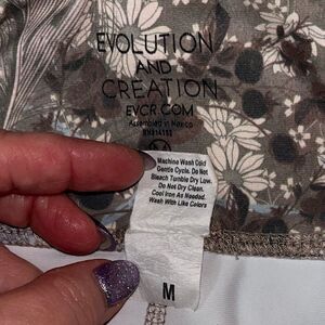 athletic wear. athleisure. Ankle length legging, yoga pant, workout gear from Evolution and Creation. Size medium. Floral and skull print. Brown, grey, white, pinky peach. Regular waist with elastic. Size medium. Like new. Gym ready.