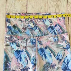 Evolution and Creation high rise tropical foliage dream catcher bull skull capris legging sz S