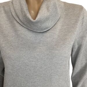 Stunning silver sweater with silver metallic threading sweater by Evolution. Features cowl neckline, stretchy. Size small. Like new condition.