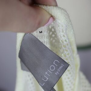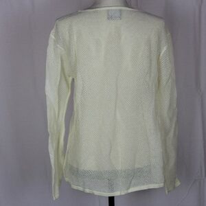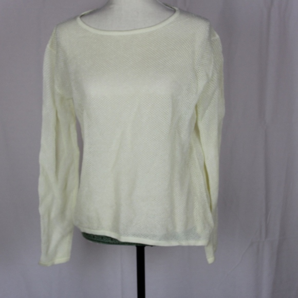 Great light weight sweater. has to be worn with a tank top or something else underneath since it is slightly see-through because of the holes. it a manilla colored sweater