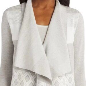 Evolution by Cyrus Stitch Fix Chiana Graphic Open Drape Cardigan Off White Size: Medium NWT (new with tags) Length 37" Bust 44" Sold by Stitch Fix Color: Off White with Gray Open Drape Front Viscose/Poly/Nylon Blend New Condition Smoke free pet free home Nice Quality Very Soft Classy Classic Office Business Casual Easy Wear Perfect Fall Topper Beautiful Gift Christmas Holiday C