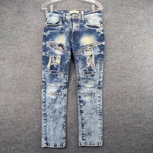 Condition: Basic five-pocket design, straight leg, distressed denim. No stains!