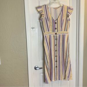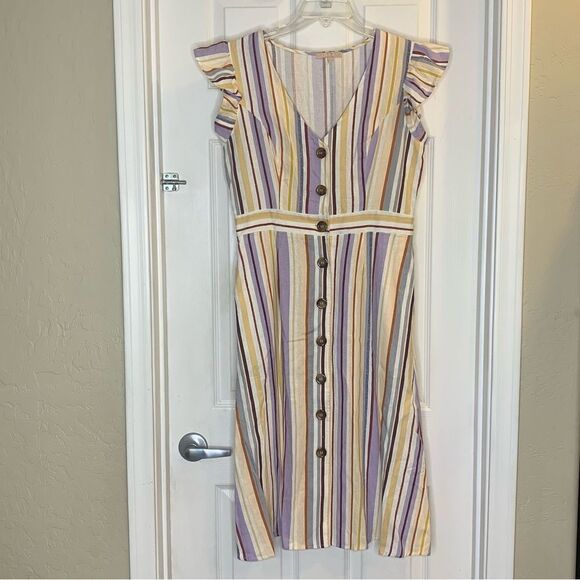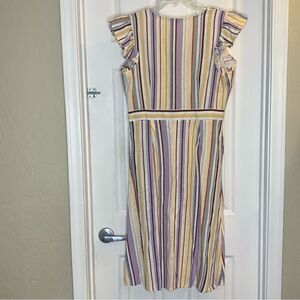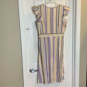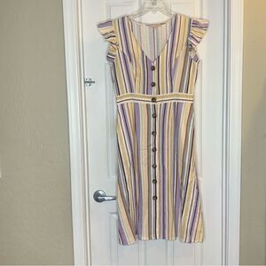Evolutionary Linen Dress Striped Ruffle Size Large