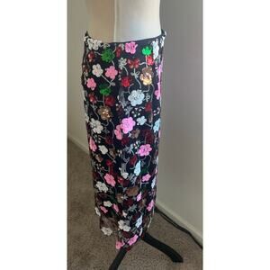 Evolutionary Multicolor Floral and Black Sequin and Mesh Side Zip Up Skirt Sz L