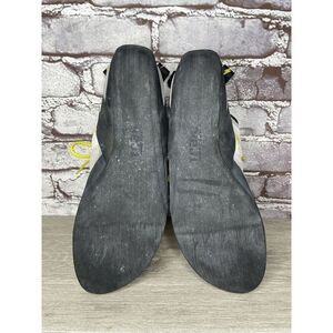These Evolv Defy climbing shoes are the perfect choice for any climber looking for a comfortable and high-performance shoe. The gray and yellow color combination is stylish and sure to turn heads while climbing. Made in the United States, these shoes are designed for climbing enthusiasts and are perfect for any outdoor climbing trip. The shoes are available in size 12 with a medium width, making them suitable for most climbers.