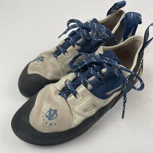 Evolv Skyhawk Rock Climbing Shoes Womens Size 8.5 BLK Blue Cream Leather Lace Up