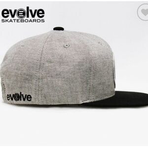 The Evolve cap features a snapback design with a simple black, grey, and white color scheme.