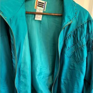 EVR Vintage 90's Silk Teal Blue Bomber Jacket