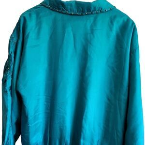 Evr Vintage 90's Silk Teal Blue Bomber Jacket