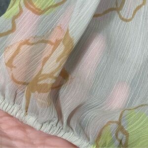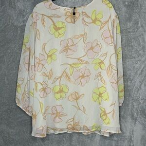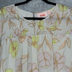 Evri 4X Shirt Top Cream Floral Flower 3/4 Sleeve Round Neck Sheer Button Back