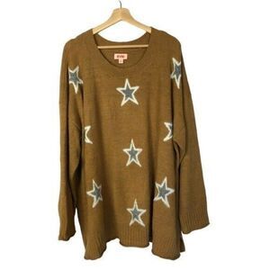Evri Brown Silver Star Knit Crewneck Pullover Sweater 4X
