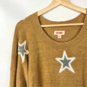 Evri Brown Silver Star Knit Crewneck Pullover Sweater