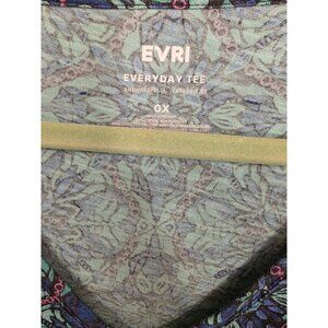 Evri Everyday Tee V-Neck Relaxed Fit 0X Womens Multicolor Long Sleeve Cotton