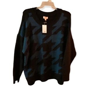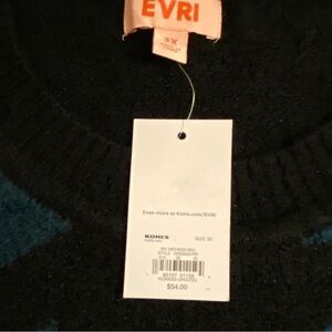 Evri Sweater Women’s Size 3X New Long Sleeve Black And Teal Crew Neck New