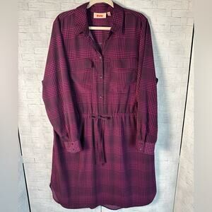Evri houndstooth long sleeve, mini dress, burgundy, black academia plus size