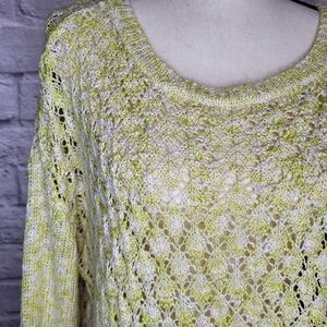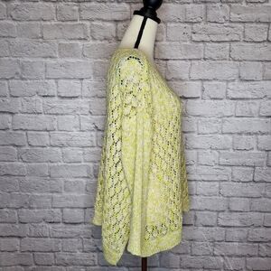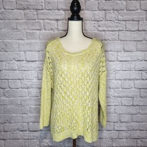 Evri women's yellow white open knit scoop neckline long sleeve sweater size 1X