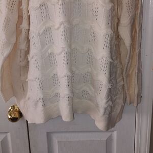 Evri Blue Self Wavy Fringe Strip Long Sleeve V-Neck Sweater Sz 4X