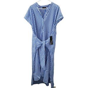 New with tags Evryday Jane tie waist shirt dress in blue and white gingham check. Button up, tie front, short sleeves.