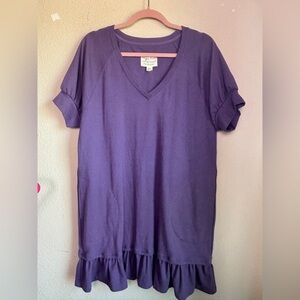 Evy’s Tree Grape Purple Mikela Ruffle Hem Pocketed Short Sleeve Knit Dress XL