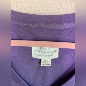 Keywords: Evy's Tree, Mikela, Dress, Tunic, Plus Size 14, Purple, Plum, Lavender, Knit Dress, Jersey, V-Neck, Short Sleeve, Puff Sleeve, Raglan Sleeve, Ruffle Hem, Tiered, Pockets, Comfortable, Casual, Summer, Spring, Modest, Flowy, Anthropologie Style.