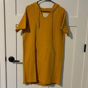 Great fall sweatshirt dress with a kangaroo pocket and hood! 58% cotton 38% polyester 4% spandex