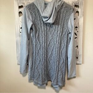 Evy’s Tree Light Blue Long Sleeve Hood Open Front Crochet Back Cardigan NWT