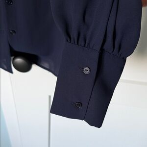 Evy’s Tree “the Madison” blouse, NWOT. This elegant navy blue top features a stylish ruffled design, perfect for any occasion. Its classic look makes it a versatile addition to your wardrobe.