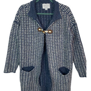 Evys Tree Aubrey long wool blend knit navy blue/ivory sweater jacket. Size M