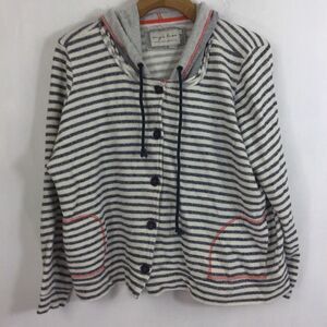 Evy's Tree Womens Ashley Striped Button Up Hooded Jacket Gray/White Size Large