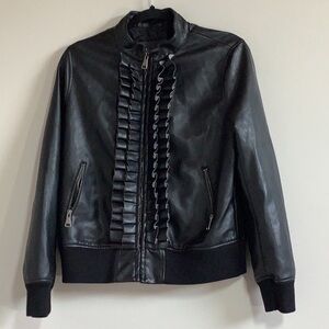 Evy’s tree women's the Zoe black ruffle faux leather bomber jacket
