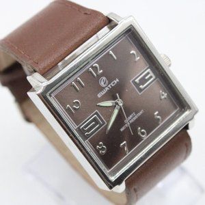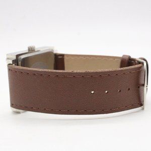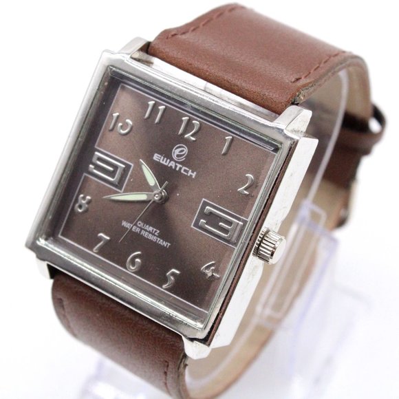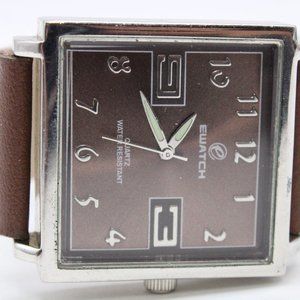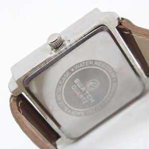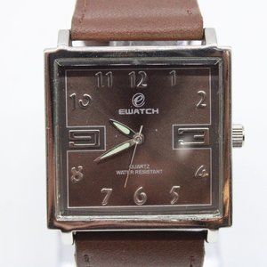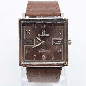 Ewatch Mens Watch Silver Tone Stainless Steel Classic Brown Leather Band