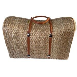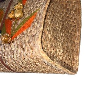 Ex Vintage 70s Boho Straw Handmade Taxco, Mexico Floral Embroidered Tote Handbag