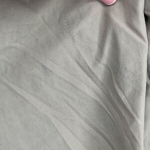 Flaws: Rip in fabric near front hem and staining on rear leg near hem