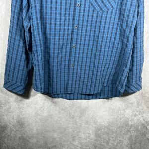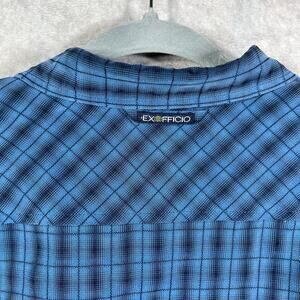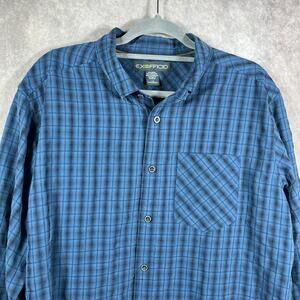 ExOfficio Shirt Mens Large Blue Plaid Button Up Long Sleeves Casual Outdoor Gorpcore