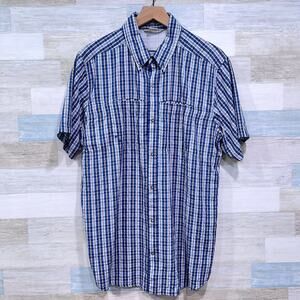 ExOfficio Short Sleeve Ventilated Hiking Shirt Blue Plaid Snap Button Mens XL