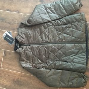 Lightweight jacket that is breathable and packable. Great for traveling! Converts into a pillow. Has micro-fleece lined collar. Has pockets on the inside for phone and passport. Water and wind resistant.