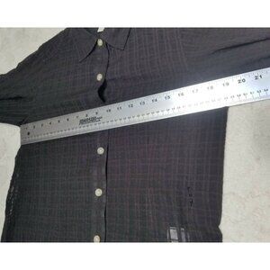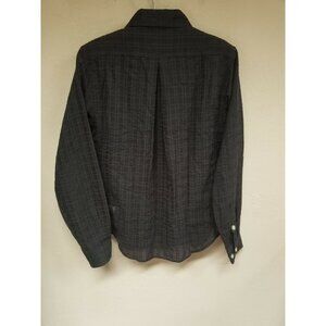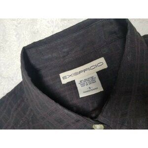 ExOfficio Womens Button Down Plaid Shirt Top Medium Black Roll-Tab Sleeve Casual