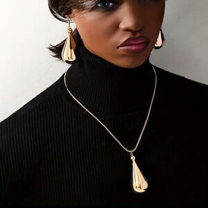 Discover luxury at its finest with our Exaggerated necklace and earring set. The dazzling design of giant gold drops adds a touch of opulence to your style. Captivate with this unique set that combines elegance and boldness. Perfect to elevate any special occasion. Make a fashion statement with our Exaggerated jewelry today!